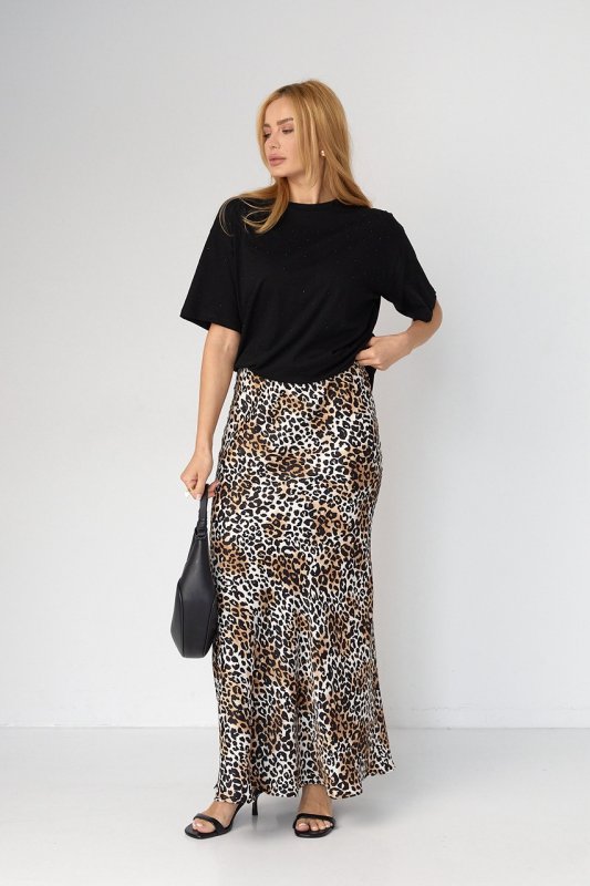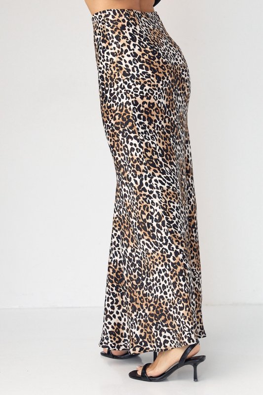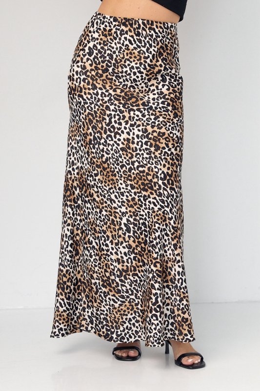 Спідниця атласна з леопардовим принтом - 1724 коричнева