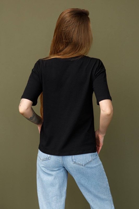 Ця базова футболка - незамінна річ у гардеробі кожної жінки. Виготовлена з високоякісної тканини, модель має м'який та приємний на дотик матеріал, що забезпечує максимальний комфорт протягом дня. Футболка має класичний крій з круглим вирізом горловини та коротким рукавом, що робить її універсальною та відмінною для будь-якого стилю одягу. Модель доступна у різних кольорах та розмірах, щоб ви могли знайти ідеальний варіант для себе. Придбайте базову футболку та насолоджуйтеся комфортом та стилем щодня.