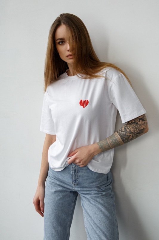 Базова футболка з принтом біла 8379