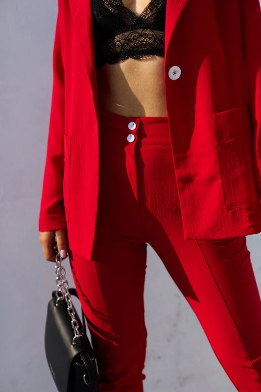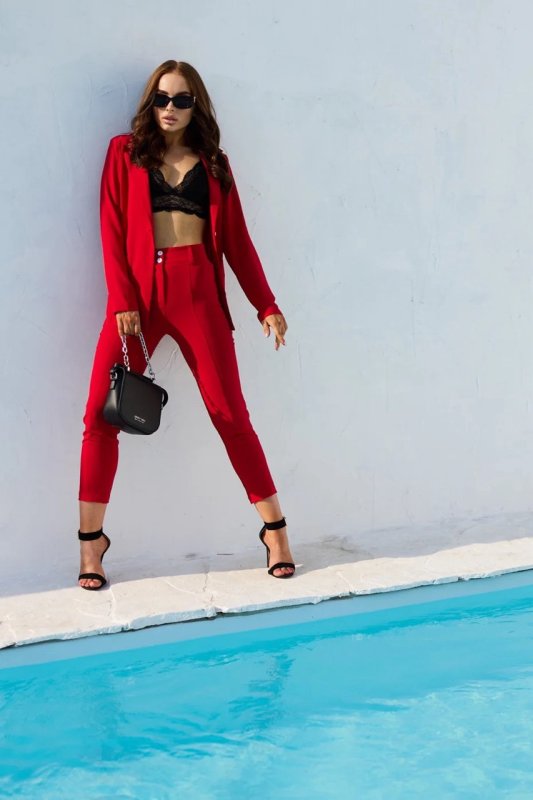 Розбав свій гардероб яскравими фарбами. Вільного крою костюм відмінно підійде як для офісної роботи, так і для вечірніх посиденьок з подружками. Штани йдуть із завищеною талією, з обох боків є кишені.