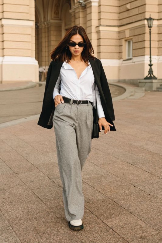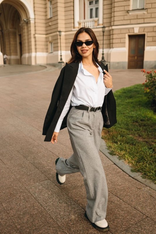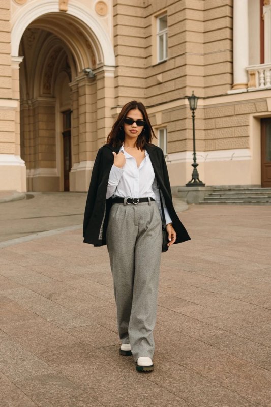 Фасон: широкі штани, розкльошений, з високою посадкою, з кишенями