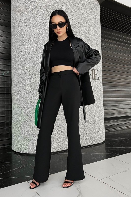 Класичні штани з невеликим розкльошенням для будь-якої нагоди: підкреслюють силует і виглядають елегантно.