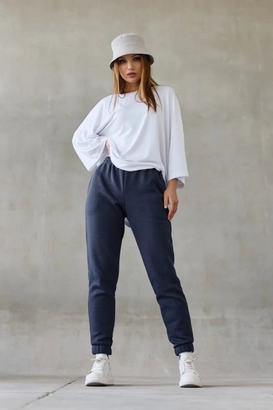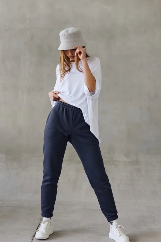 Штани в спортивному стилі із завищеною талією. Є кишені у бічних швах. Пояс та манжети йдуть на гумці 4 см. Матеріал – тринитка на флісі.