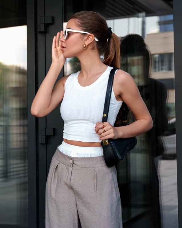 Наша колекція штанів палаццо з льняного матеріалу - ідеальний вибір для стильного та комфортного літнього образу. Пояс з імітацією білизни додає оригінальності, кишені в бокових швах, середня посадка і защіпи додають штанам комфорту. Висока якість та швидка доставка гарантовані. Замовте прямо зараз!