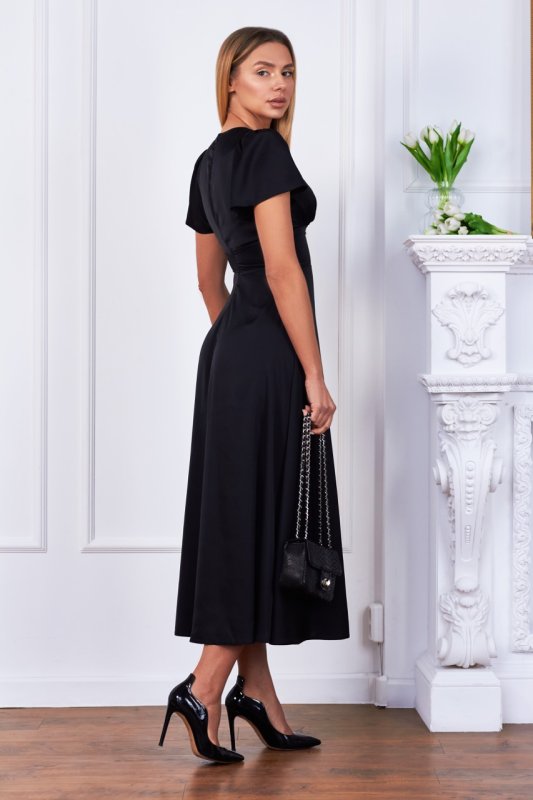 Ця чарівна сукня з шовку має рукава-крилушки та імітацію корсету по талії. V-подібний виріз декольте надає привабливості лінії груді. Ця модель підкреслить жіночність та елегантність. Вона ідеальна для особливих випадків та святкових заходів.