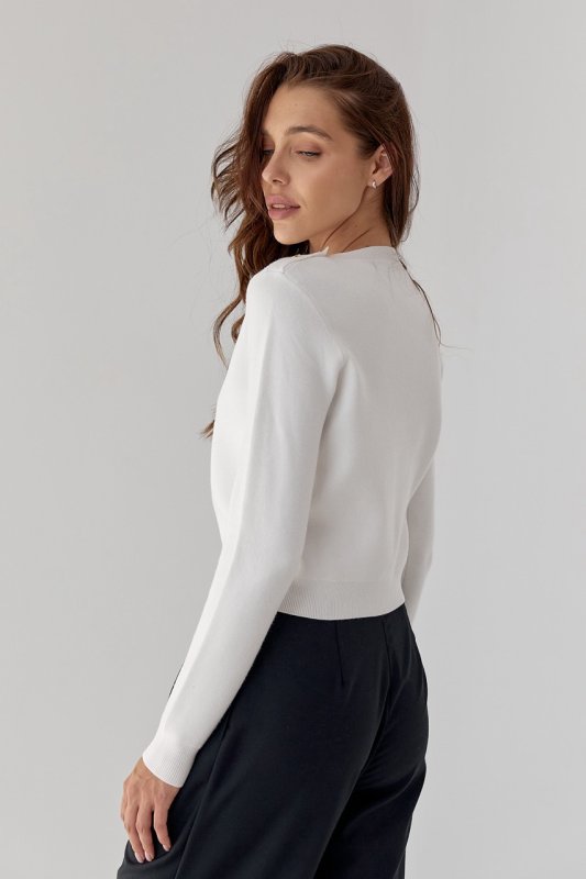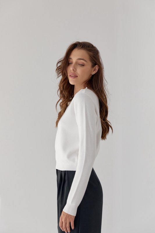 Теплий трикотажний джемпер. Рукава втачні, довгі, по низу рукавів і по низу виробу виконан манжет.