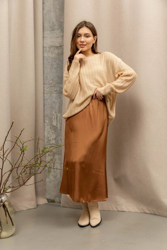 Виріб оверсайз виготовлений із високоякісної в'язки, має елегантну круглу горловину та приспущене плече. Вільний фасон оверсайз розкріпачить рухи, додасть впевненості.
