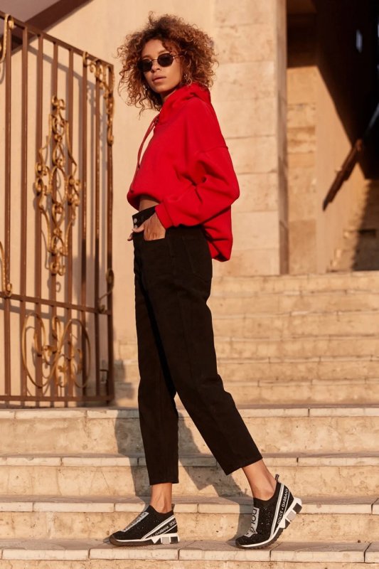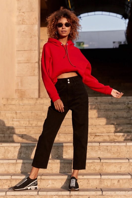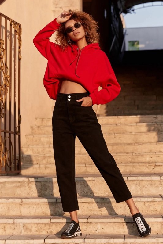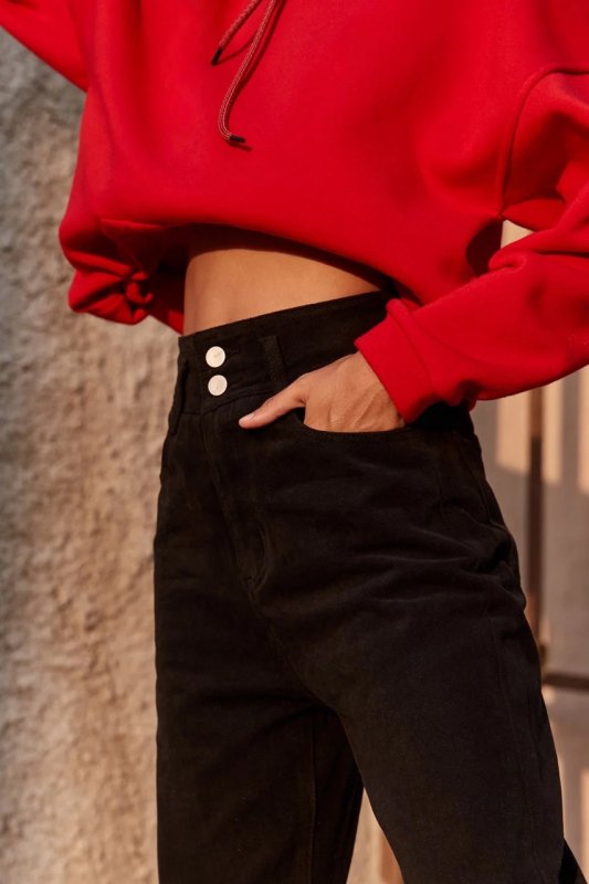 Чорні джинси актуальні завжди, незалежно від сезону чи погоди. Щільний матеріал та лаконічний дизайн. Вид застібки: блискавка та гудзики.