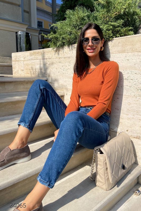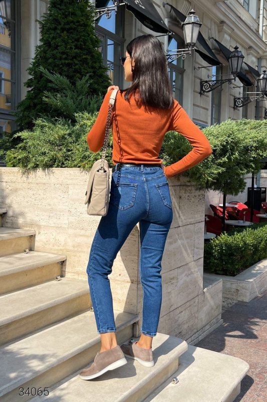 Джинси мом з високою талією 34065 синій