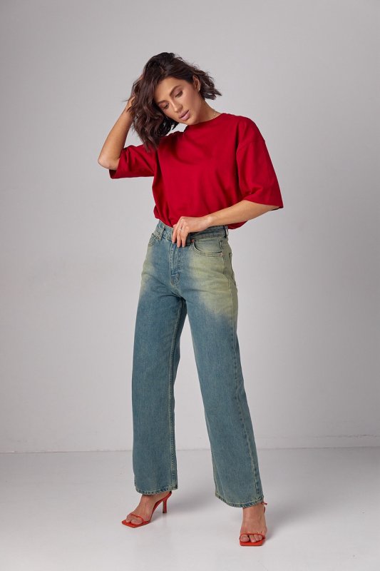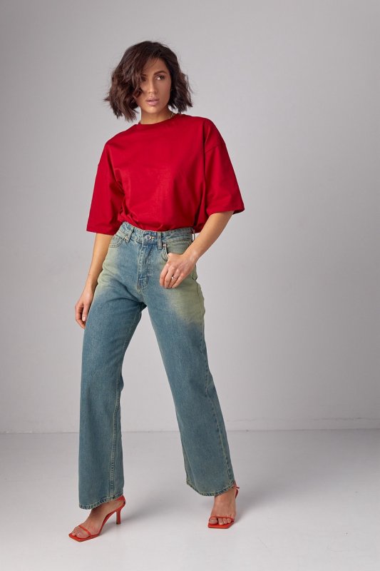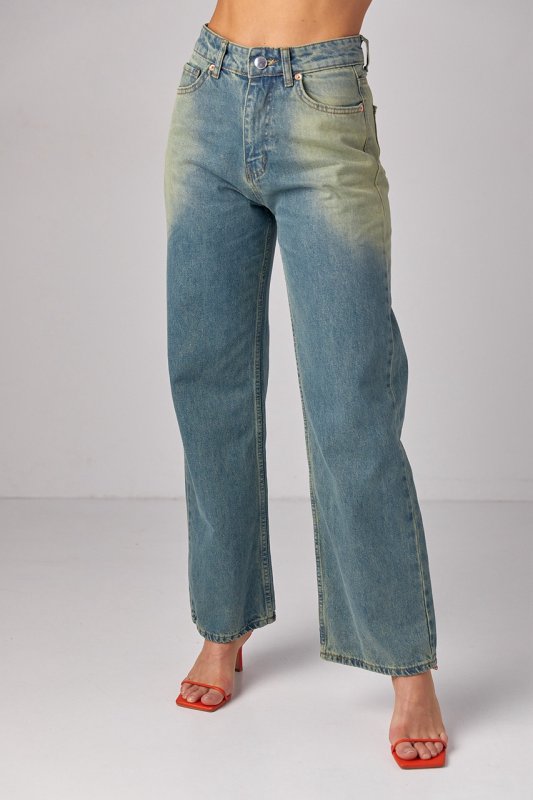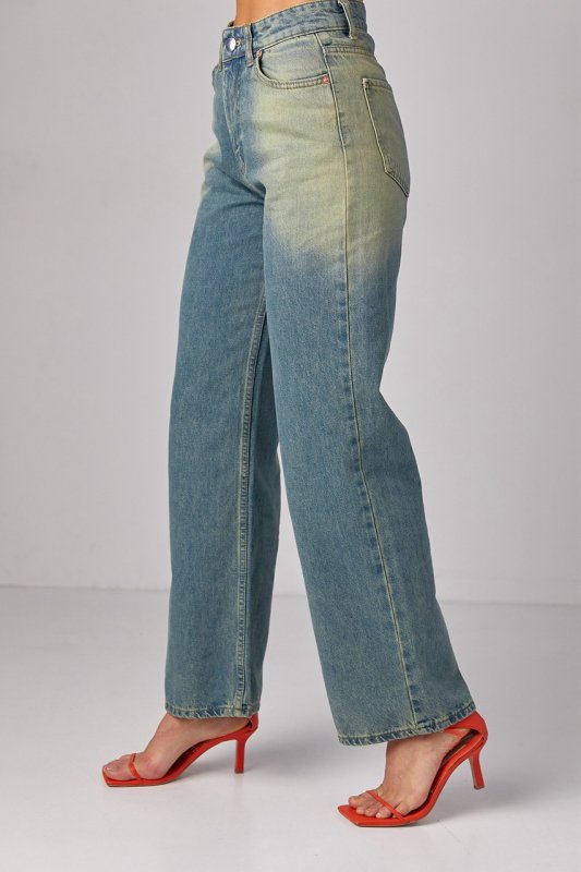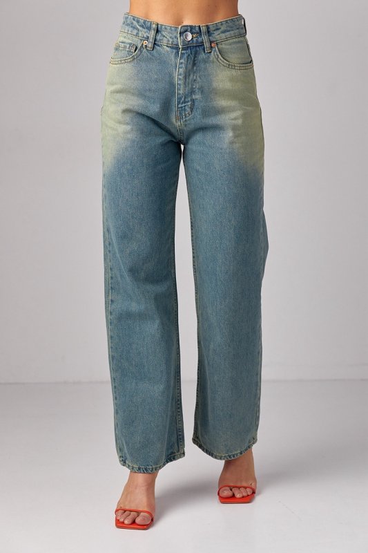 Жіночі джинси прямого крою з ефектом two-tone coloring - це стильний варіант одягу, який відрізняється особливою двоколірною тканиною. Цей ефект надає джинсам унікального та сучасного вигляду.