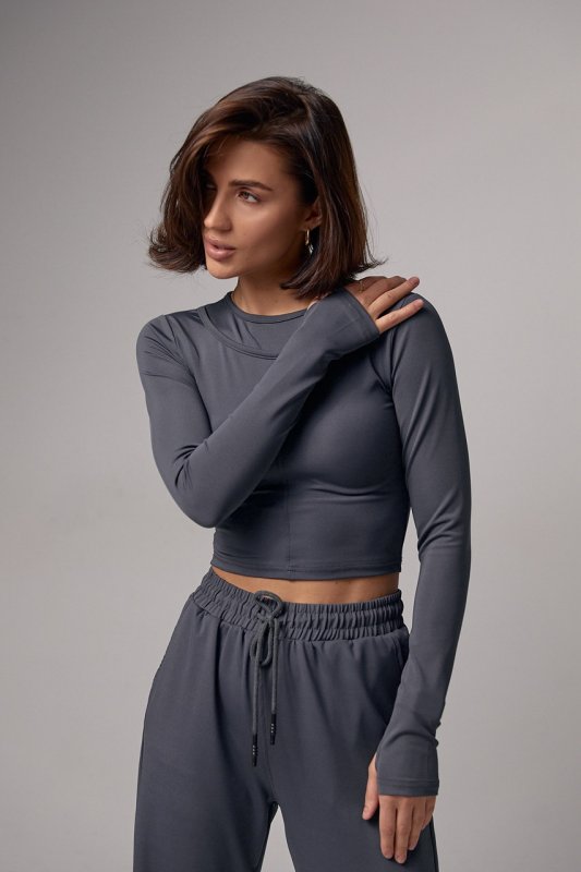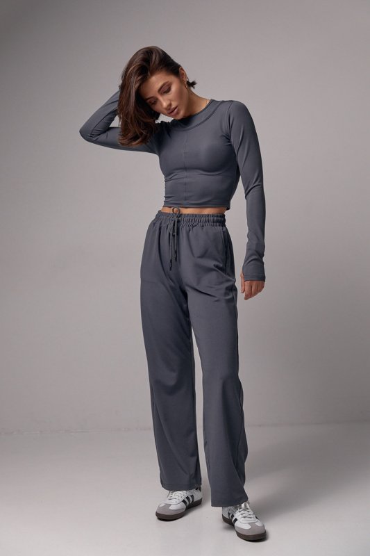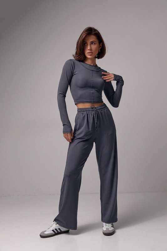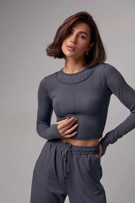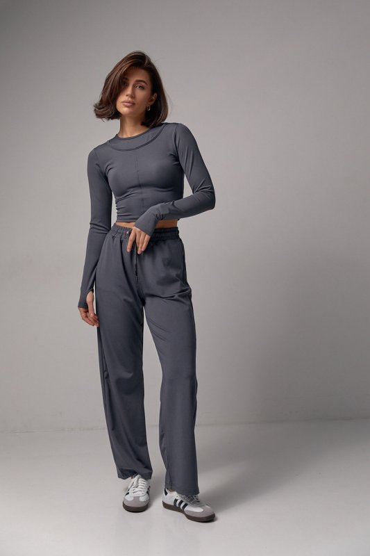 Еластичний спортивний костюм жіночий - 22135 темно-сірий