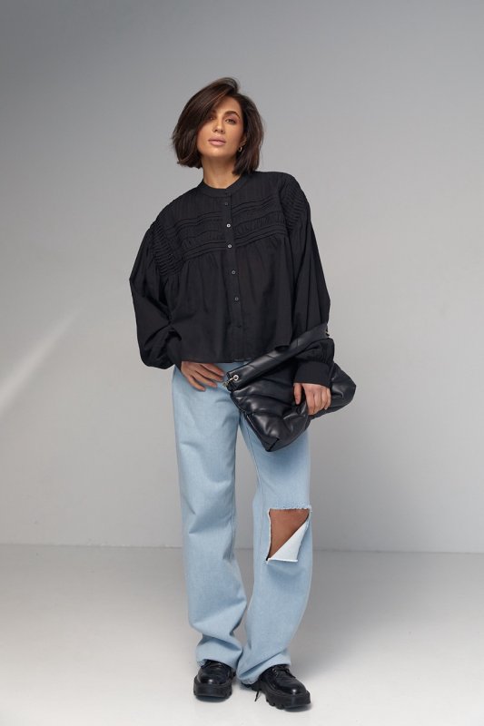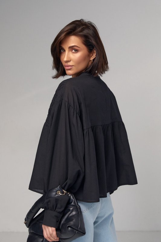 Бавовняна блузка на ґудзиках розширеного фасону - 6844 чорна