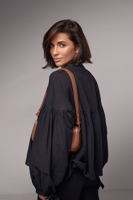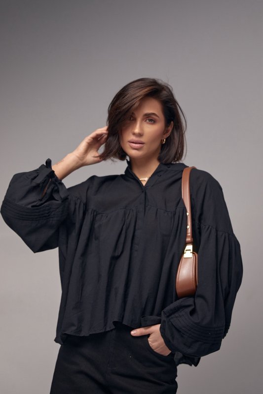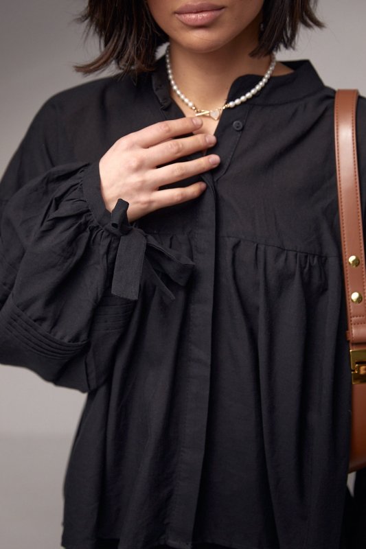 Бавовняна блузка з широкими рукавами на зав'язках - 6843 чорна