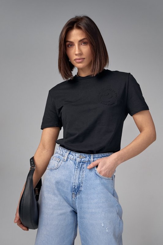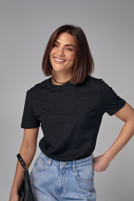 Бавовняна футболка з опуклим принтом смайла - 02403 чорний