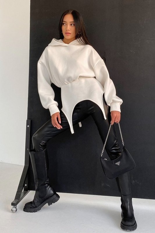 Зручність і комфорт – головні складові сучасного стилю. Популярні останнім часом жіночі худі - це затишні толстовки з капюшоном. Наша нова модель з теплого футера на флісі зможе з легкістю замінити верхній одяг, коли на вулиці ще не так холодно. У період міцних морозів в комплекті з пуховиком ця річ не дозволить замерзнути навіть при тривалому перебуванні на свіжому повітрі.