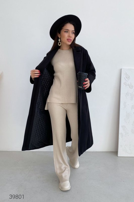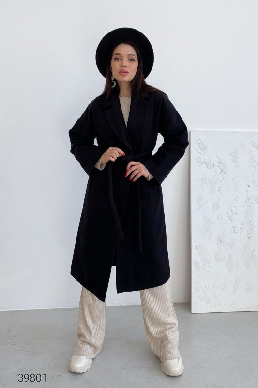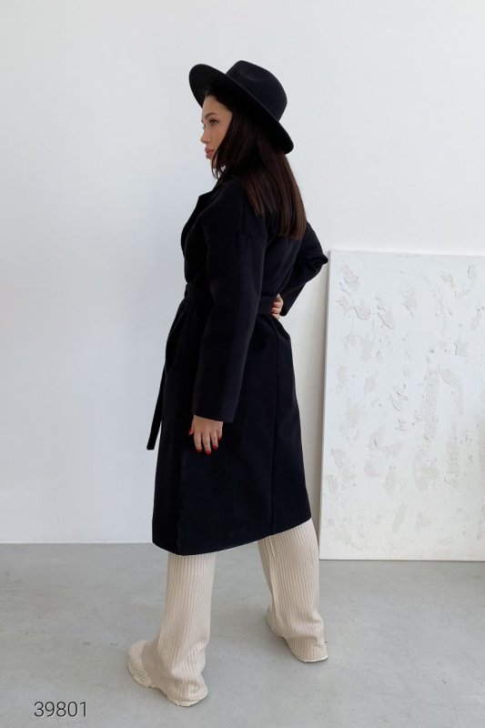Кашемірове пальто із запахом 39801 чорний