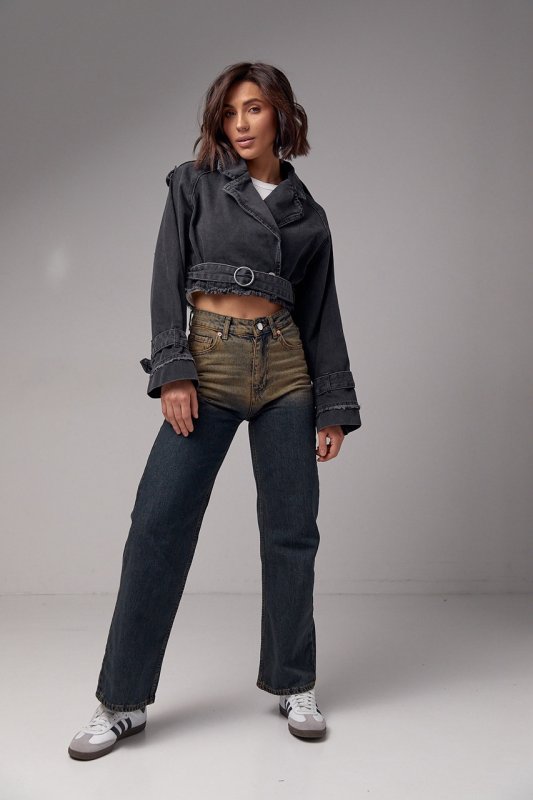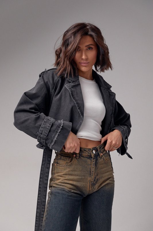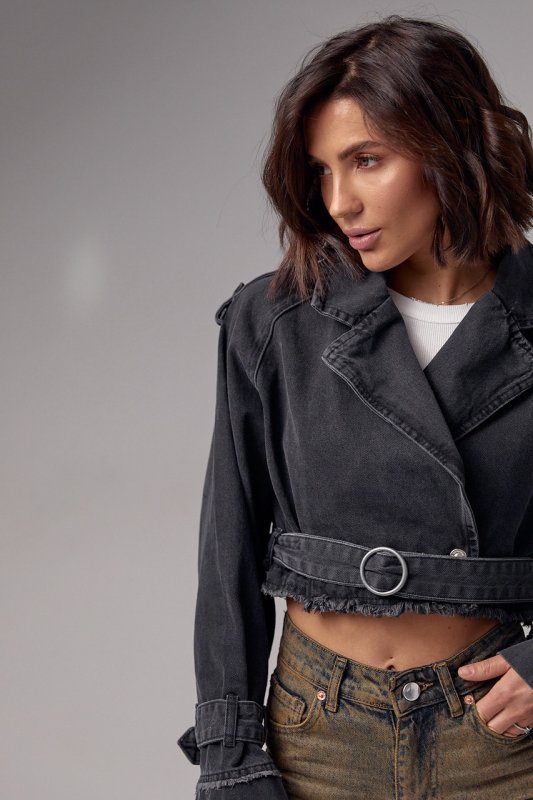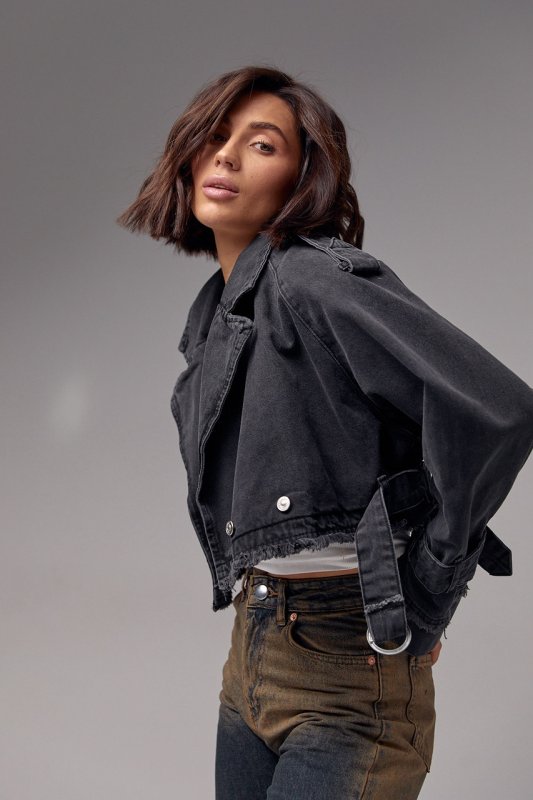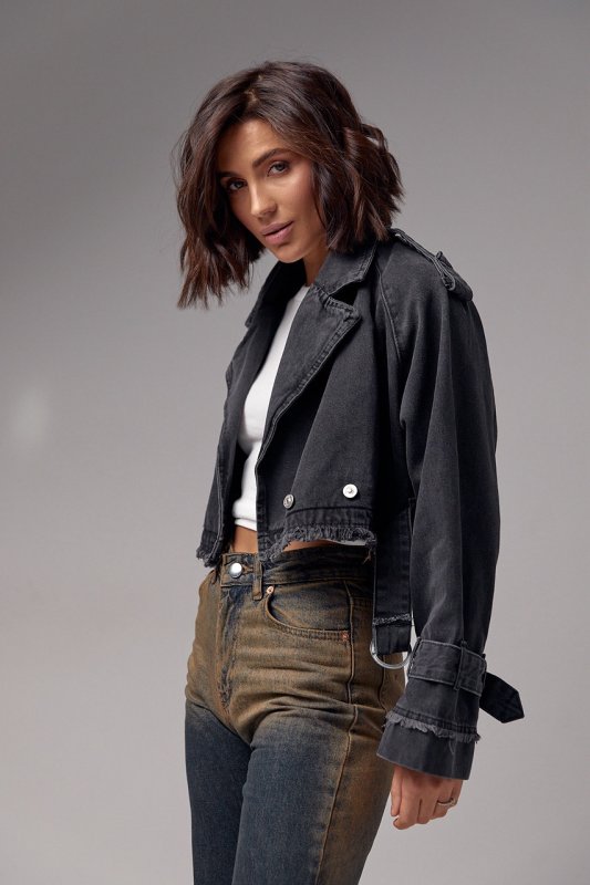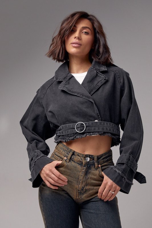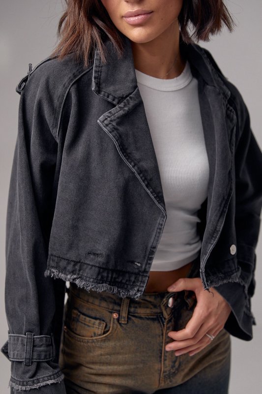 Коротка жіноча джинсівка у стилі Grunge - 3103 чорна