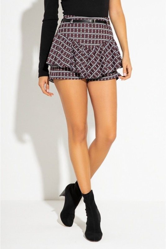 Короткі шорти з трикотажу високої посадки, декоровані широким воланом. Застібається на блискавку ззаду. Комплектується поясом. Шорти стануть відмінним вибором для дівчат, які люблять міні довжину, але при цьому хочуть відчувати себе вільно і комфортно, в той же час волан додасть образу кокетства і невимушеності.