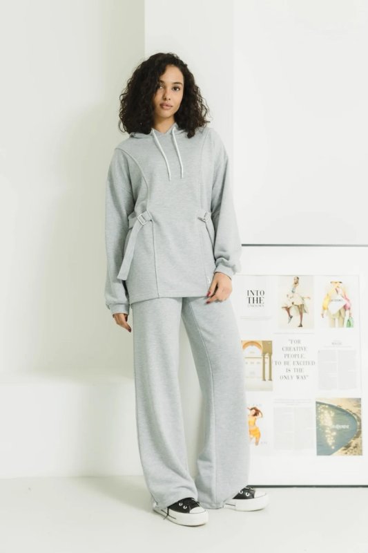 Конструктивні елементи: розрізна полиця, штани на резинці, капюшон