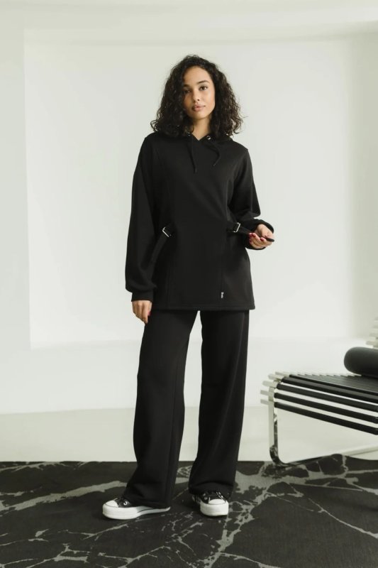 Конструктивні елементи: розрізна полиця, штани на резинці, капюшон