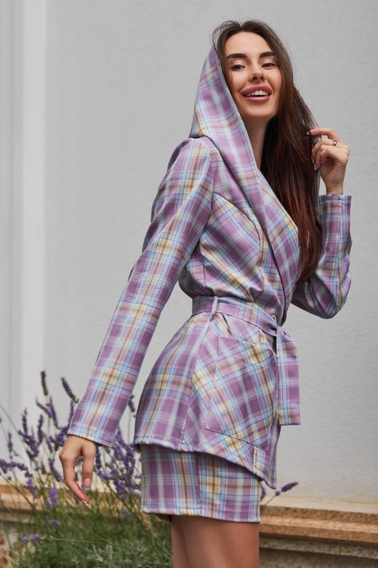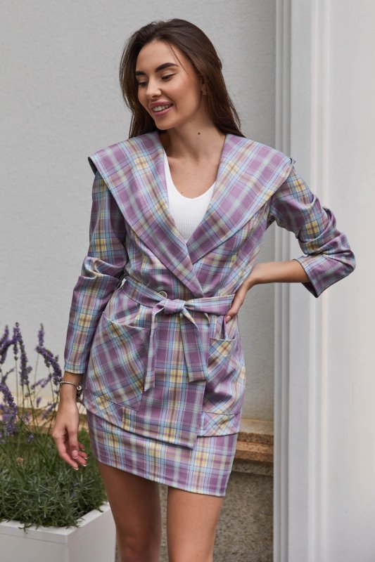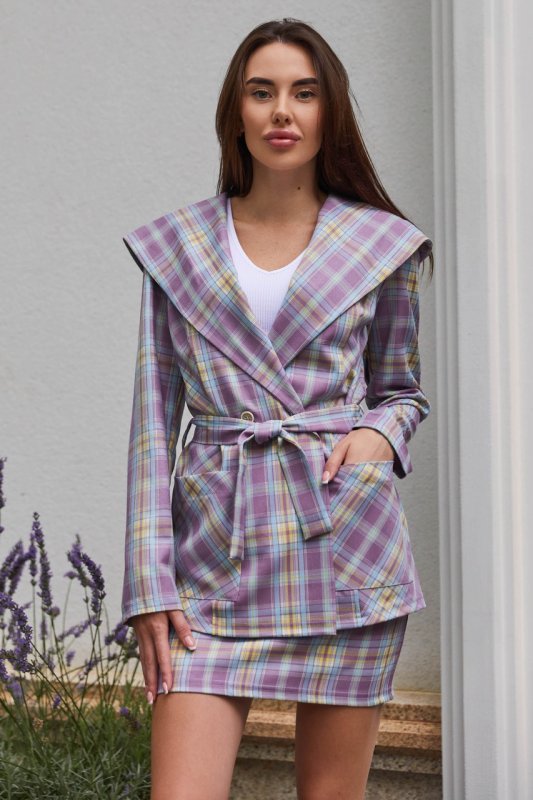 Незвичайний та оригінальний костюм зі спідницею у класичну клітку стане родзинкою у Вашому гардеробі. Костюм прямого силуету з оригінальним коміром-капюшоном, таке дизайнерське рішення надає моделі стилю та унікальності.