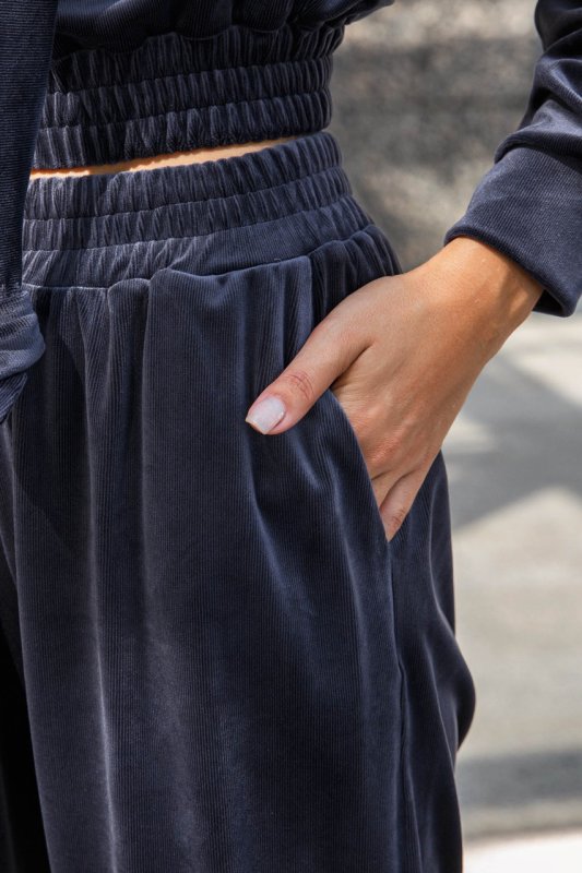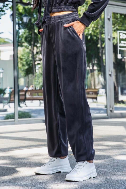 Модний жіночий костюм з велюру у стилі спорт-шик. Наш новий прогулянковий костюм – двійка – чудовий вибір на теплу осінь! Головним критерієм для повсякденного одягу залишається комфорт. У нашій новій моделі Ви почуватиметеся зручно та комфортно, адже це так важливо у сучасному ритмі життя. Модель костюма поєднує у собі світшот з довгими рукавами з капюшоном та комфортні штани.
