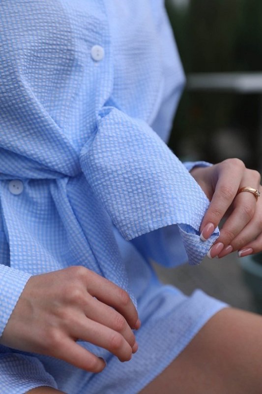 Стильний літній костюм-двійка з шортами стане відмінним варинатом для спекотного літа. Представлений у вигляді блузи Oversize і шортиків на середній посадці. Оригінальна моделька виконана з легкого попліну стане улюбленою у Вашому гардеробі. Високі вирізи на шортиках додадуть образу кокетливості і сексуальності.