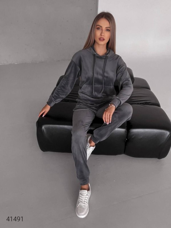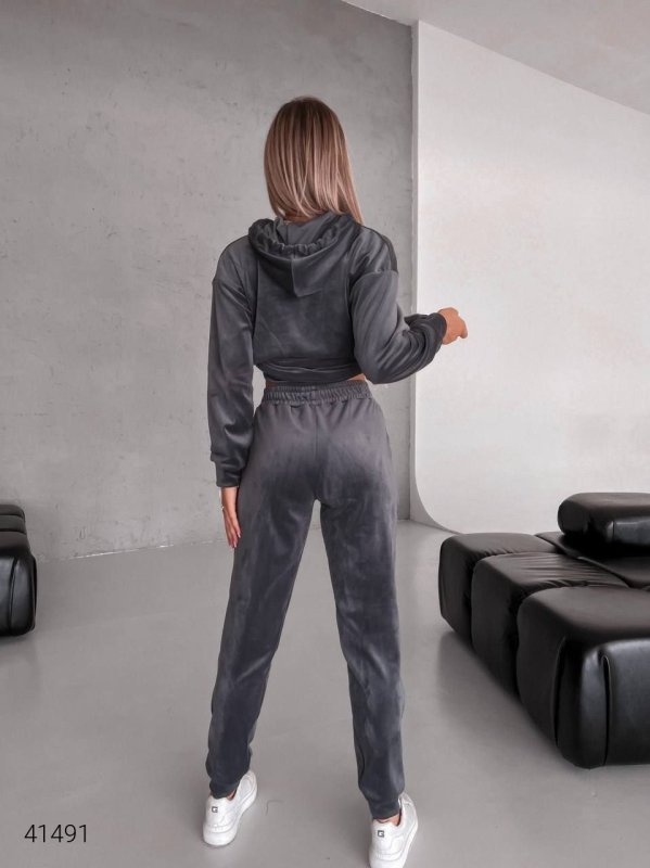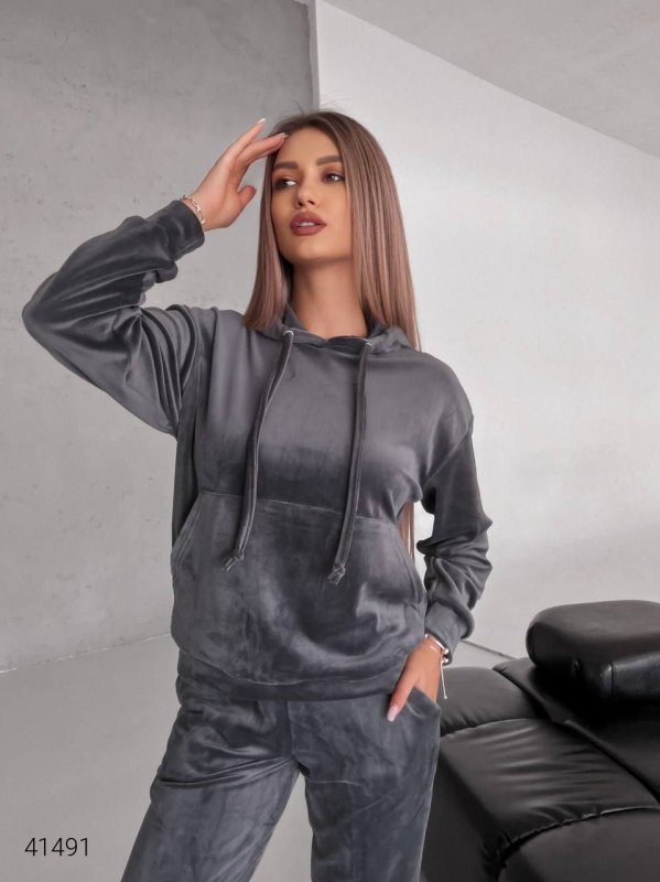 Костюм велюровий жіночий. Кофта з кишенею кенгуру та капюшоном. Штани на резинці.
