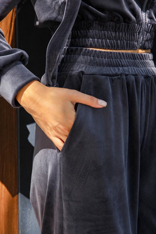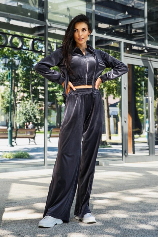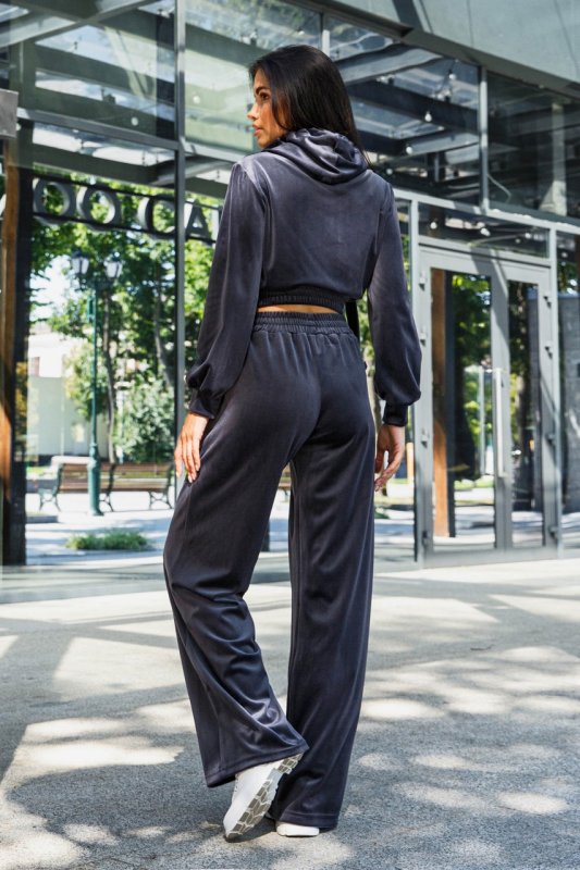 Модний жіночий костюм з велюру у стилі спорт-шик. Наш новий прогулянковий костюм – двійка – чудовий вибір на теплу осінь! Головним критерієм для повсякденного одягу залишається комфорт. У нашій новій моделі Ви почуватиметеся зручно та комфортно, адже це так важливо у сучасному ритмі життя. Модель костюма поєднує у собі світшот з довгими рукавами з капюшоном та штани – кюлоти вільного крою.