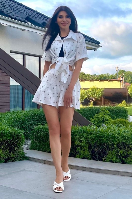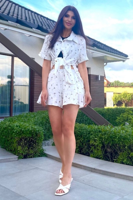 Наша новинка - це універсальне рішення як для походу на пляж, так і для звичайної прогулянки літнього вечора, він представлений у вигляді блузи і шортиків. Блуза прямого крою з центральною планкою на ґудзиках та коротким рукавом з манжетою. Короткі шортики трапецеподібної форми з з легким кльошем, які дозволять продемонструвати стрункі бездоганні ніжки. Пояс на резинці (сзаду) допоможе скоригувати лінію талії і відмінно підійде для будь-якого типу фігури як для худеньких так і для дівчат з апетитними формами. Кишені на шортах до дадуть практичності у використанні. Будь цього літа легкою та досконалою!