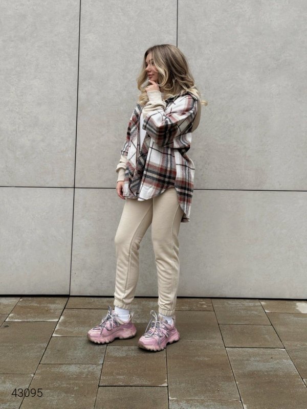 Костюм жіночий сорочка та джоггери 43095 світло-бежевий