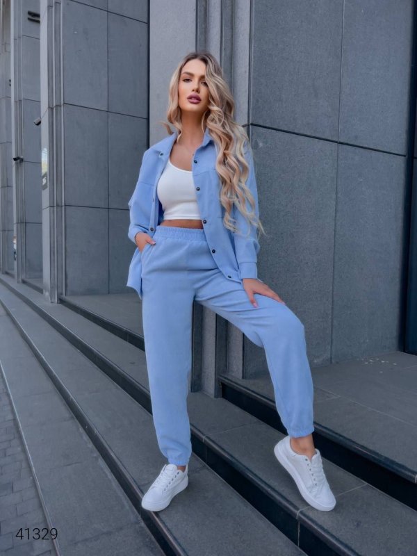 Жіночий костюм вельветовий. Пряма сорочка та штани. Тканина: мікровельвет, тягнеться.