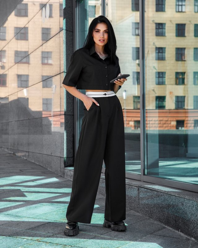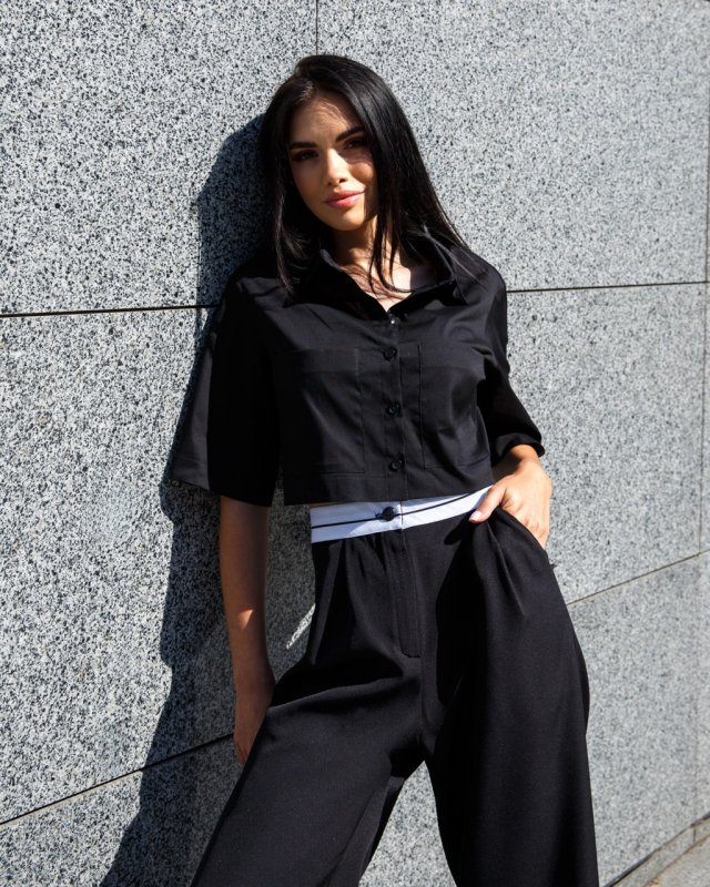 Кроп-сорочка з котону чорна 21305