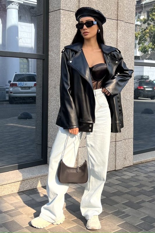 Косуха з легкістю стане універсальним елементом гардеробу: вдень її можна поєднувати з повсякденними джинсами і пуловером,