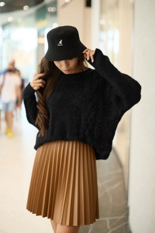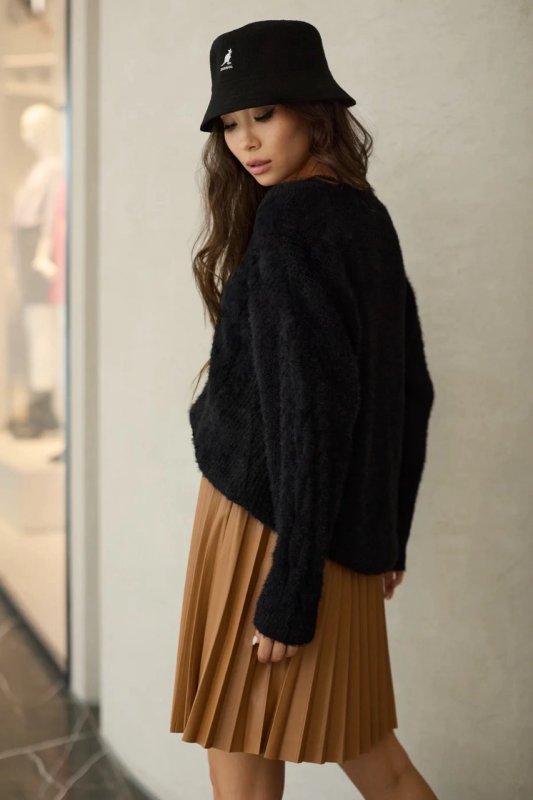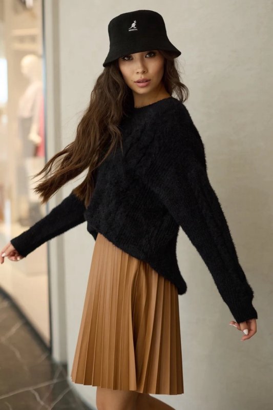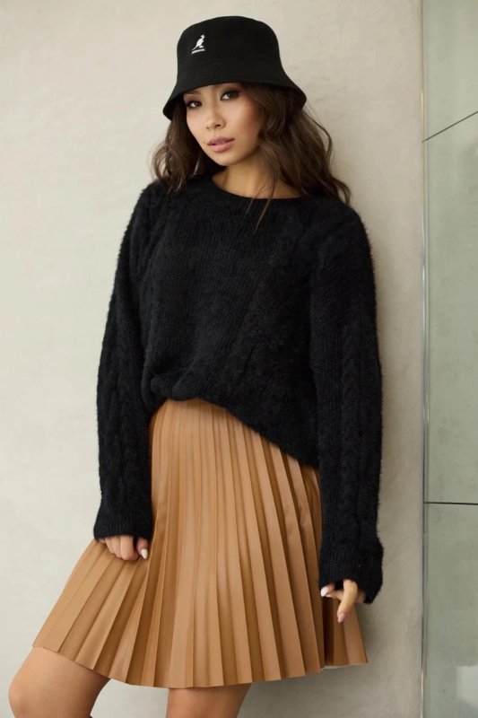 Лаконічного крою спідниця пліссе з еко-шкіри. Довжина до колін. Фасон трапецієподібний, розкльошений. Застібається на потайну змійку.