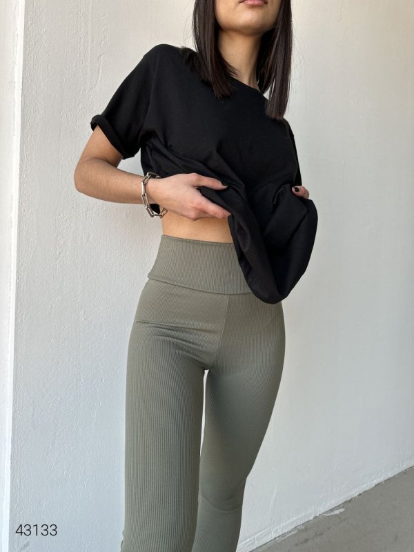 Легінси з високою посадкою в рубчик 43133 оливковий
