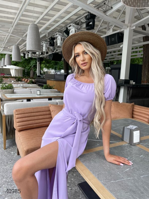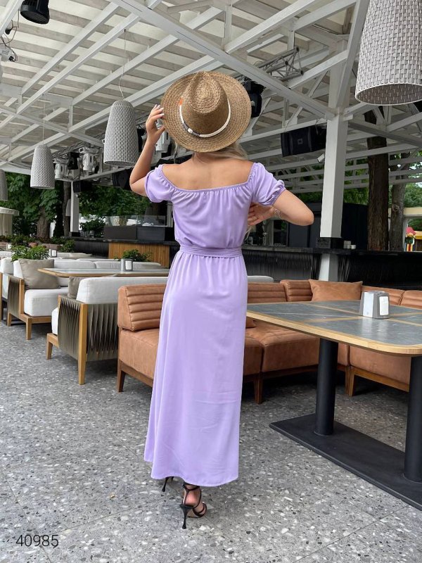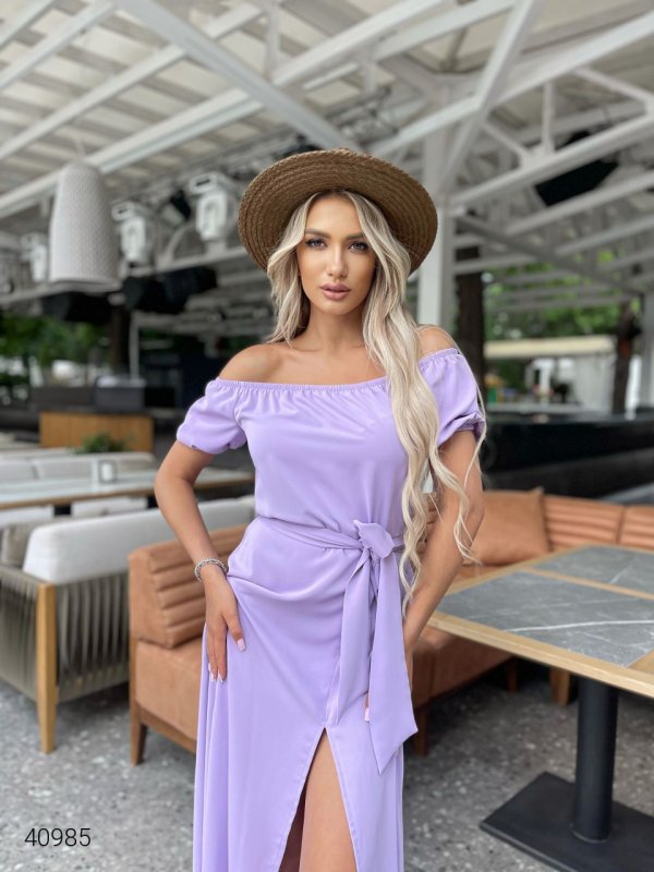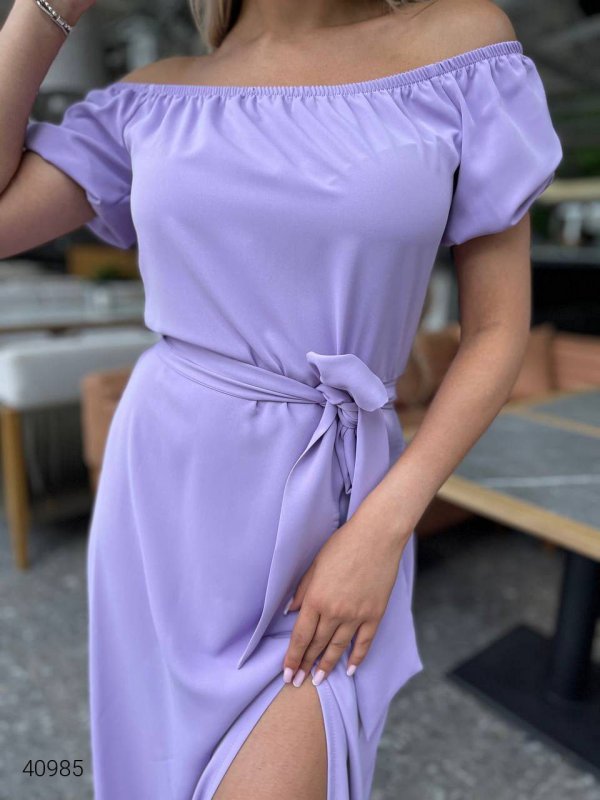 Літня сукня з відкритими плечима. Спереду розріз. Пояс у комплекті.