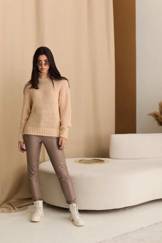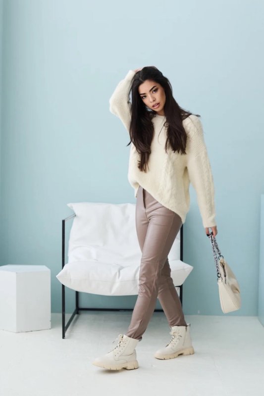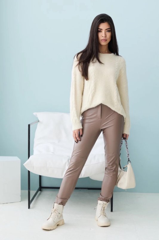 Відмінною заміною джинсам на осінь будуть лосини з еко-шкіри на флісі. Короткий дизайн і приємний колір підійдуть до будь-якого образу. Талія підвищена. Застібається на таємну блискавку та кнопку. Є імітація кишень.