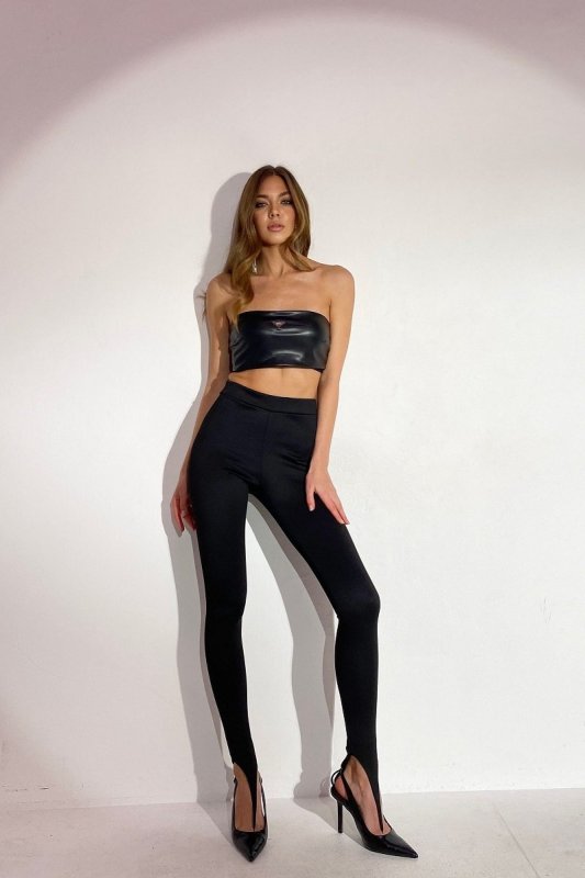 Універсальні лосини чорного кольору, стануть відмінним варіантом для холодної зими. Їх легко можна комбінувати з будь-яким чином. Оригінальності виробу надають фігурні штрипки, які виглядають дуже стильно і незвично. Відмінний варіант для повсякденності і святкового образу.