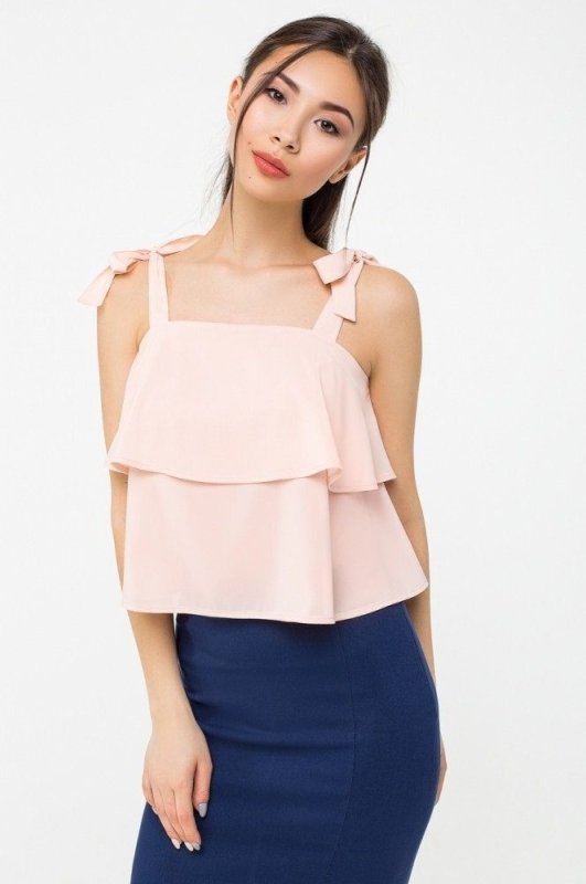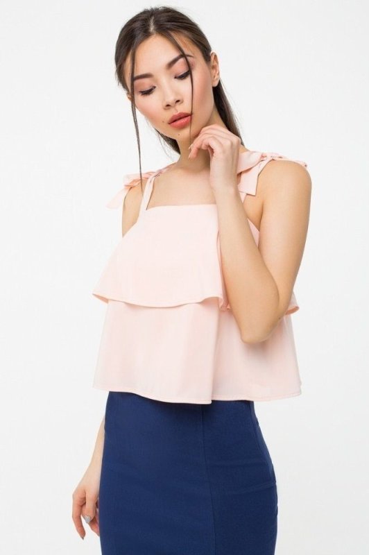 Майка з еластичного шовковистого шифону з воланами.Зростання моделі 170 див.