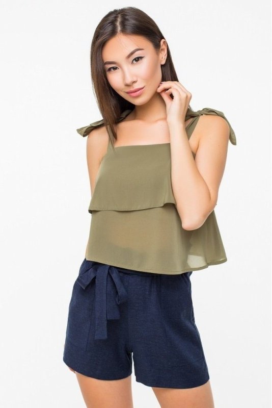 Майка з еластичного шовковистого шифону з воланами.Зростання моделі 170 див.