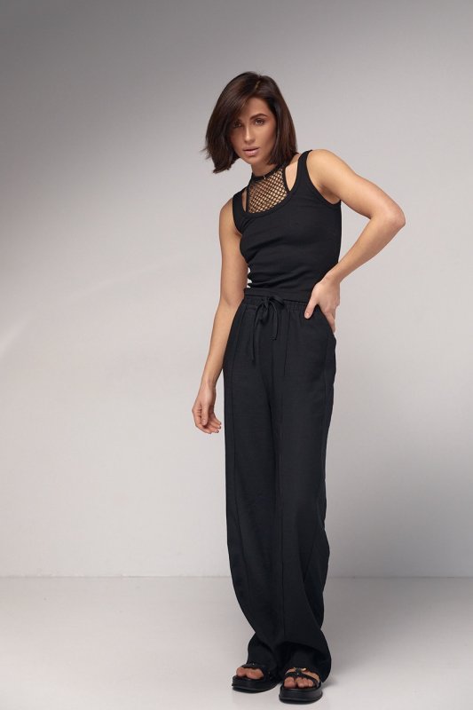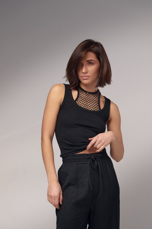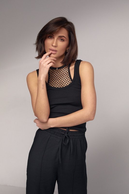 Майка в рубчик з ажурним декором 241001 чорна