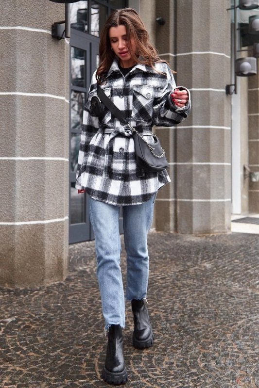 Навесні і восени дівчатам і жінкам як ніколи хочеться виглядати стильно. Підкреслити фігуру і індивідуальність допоможе наша новинка пальто-сорочка в трендову клітку. Клітка-це незамінний візерунок, який не вимагає доповнень! Клітка вкрай універсальна-не потрібно боятися своїх пишних або, навпаки, занадто худорлявих форм, невисокого зросту, придивляючись до пальто в клітку. Даний візерунок підійде дівчина і жінкам будь-якого віку і з будь-якою фігурою. Коротке двобортне пальто з накладними кишенями на грудях і паском в тон відмінно поєднується з різноманітним одягом і дає можливість кожен раз створювати стильні і цікаві луки. Пальто без підкладки, з боків дві прорізні кишені, які додадуть зручності і практичності.