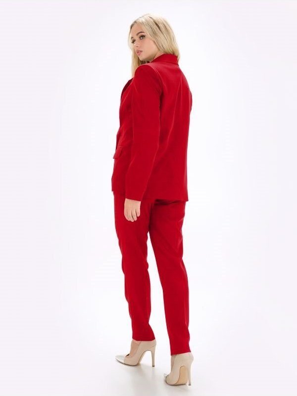 Класичний двобортний піджак прямого крою підходить будь-якого типу фігури. Це незамінний і універсальний елемент гардеробу. Відкладний комір, кишені з клапанами. Попереду злегка укорочені борти піджака. Застібається на гудзики в тон виробу. Модель на підкладці, доповнена подплечниками.