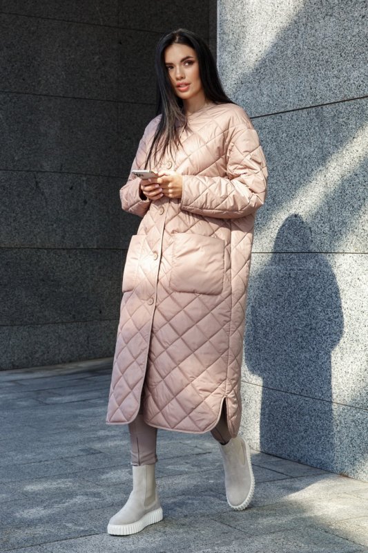 Це стильне стегане пальто з плащевої тканини і мікро пуху - ідеальне рішення для холодних днів. Воно забезпечує відмінну теплоізоляцію і захист від вітру. Крім того, це пальто виглядає дуже модно і елегантно.