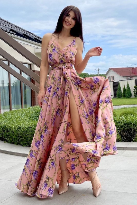 Елегантна сукня на тонких бретелях на запах в широкій палітрі кольорів. Ніжний шовк що струмує, надає моделі особливої ніжності. Подовжений силует, глибокий v-подібний виріз, тонкі регульовані бретелі, еластична вставка на поясі та довга спідниця з розрізом по нозі. Неперевершений стиль та класика!