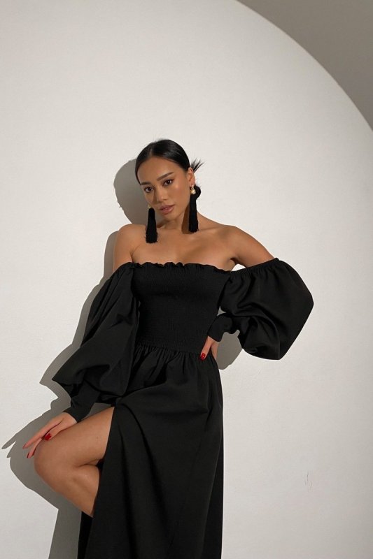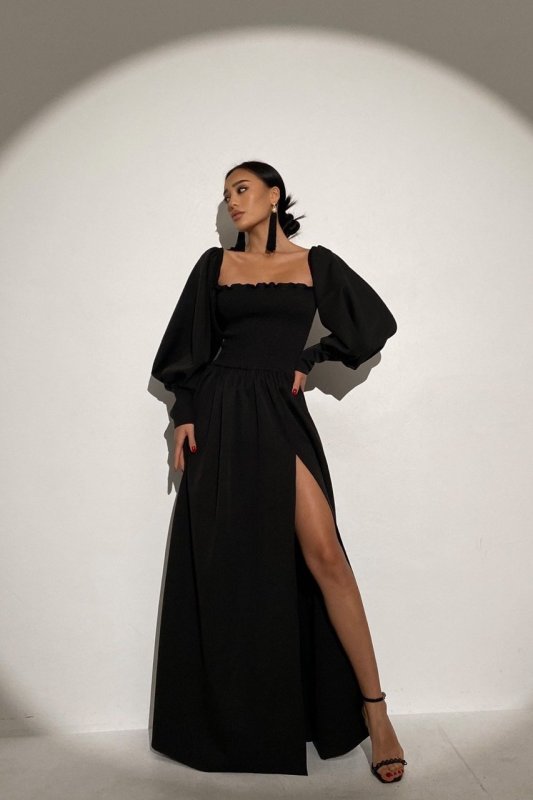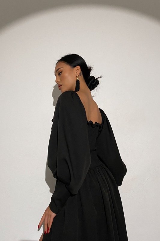 Шикарна і повітряна сукня «Ділара» додасть ніжності та жіночності у сучасний образ дівчини. Сукня Х-подібного силуету з пишним рукавом на високому манжеті. Ліф на резинці, відмінно підійде для струнких дівчат так і власниць пишних форм. По переду передбачено високий розріз. Рукав – пришивний на резинці. Пишна спідниця додасть Вашому образу романтичності. До жіночного образу сміливо додавайте взуття на підборах, компактні сумочки та елегантну біжутерію.