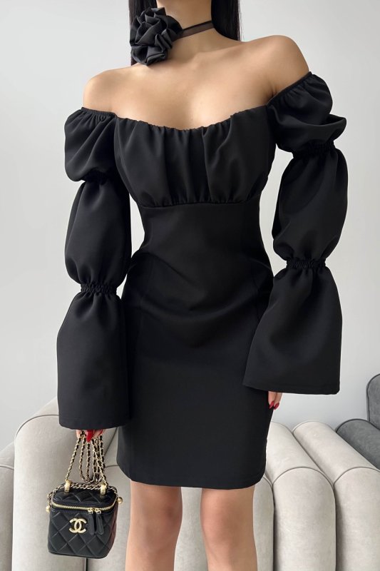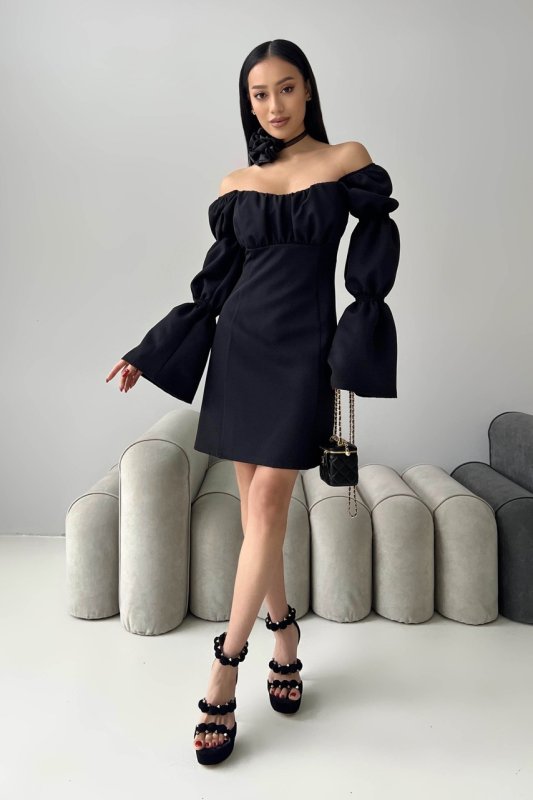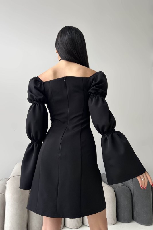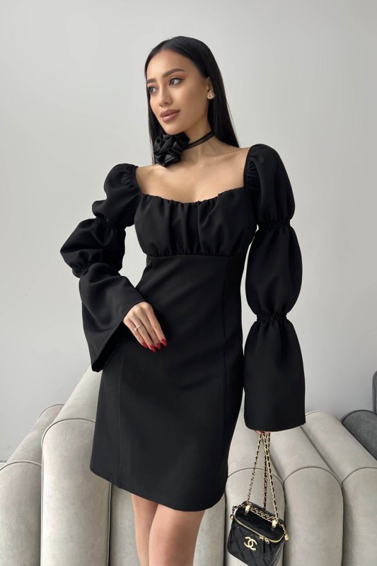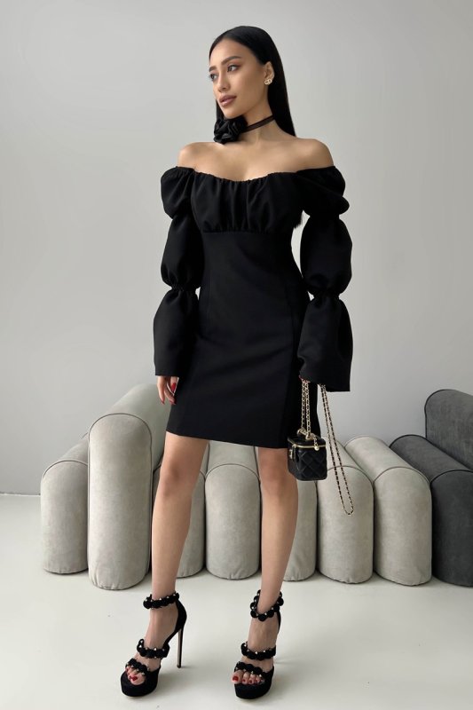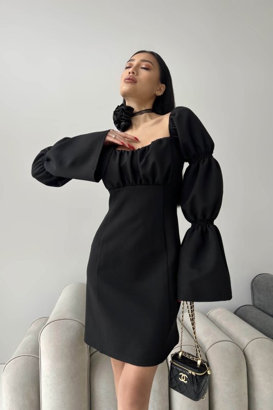 Завітайте у світ грайливості та яскравості з нашою міні – сукнею. Одночасно елегантний та сексуальний наряд підкреслить Вашу індивідуальність. Модель відріняють цікаво оформлені рукава з драпіровками, розкльшені до низу. Драпіроний ліф на поролоні, по спинці блискавка.