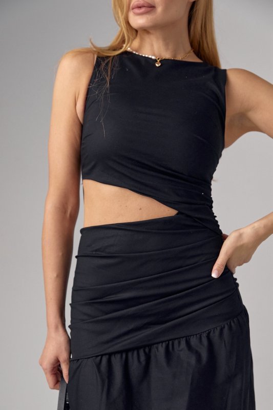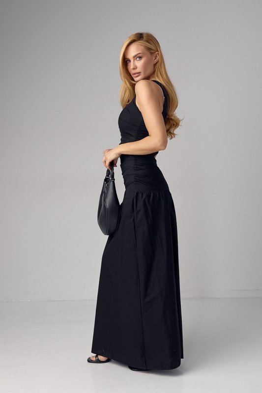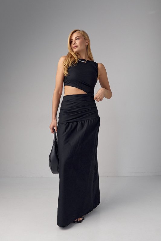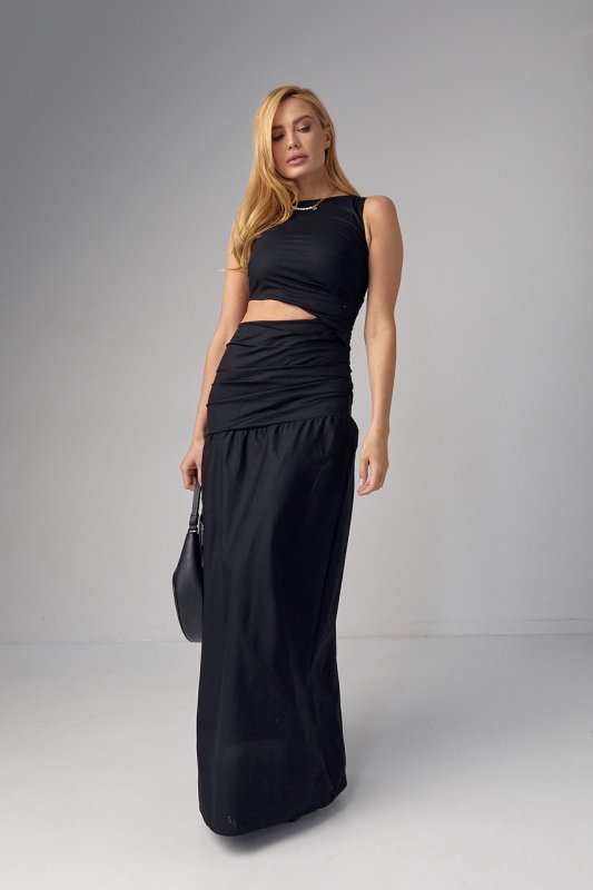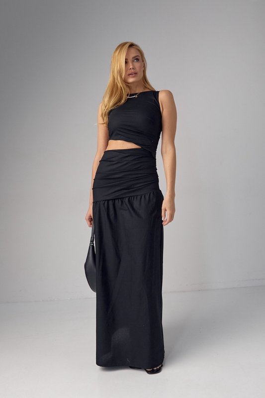 Сукня максі з драпіруванням та вирізом на талії - 23225 чорна