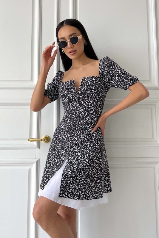 Смілива та вишукана сукня-двійка стала справжнім втіленням грайливості та кокетства. Сукня прилеглого силуету з фігурним V-подібним вирізом дозволить продемонструвати красиву лінію декольте. Довжина міні. До сукні передбачено окрема нижня спідниця. Модель представлена у широкій кольоровій гамі на будь який смак.